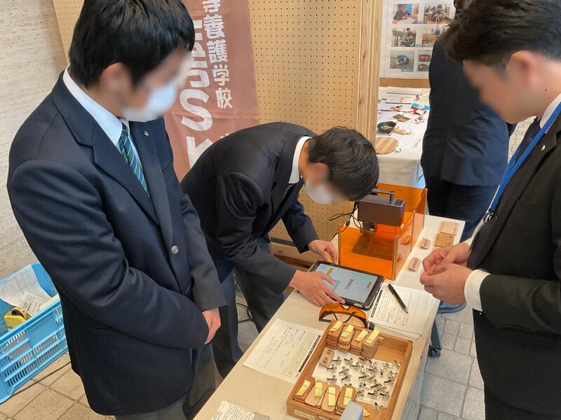 今回は、農業科・窯業科・家庭総合科・木工科が製品販売を行いました。中でも木工科は名札の実演販売を行い、大変好評でした。注文が途切れることなく、生徒たちは活動時間中、休む間も惜しんで製作に取り組みました